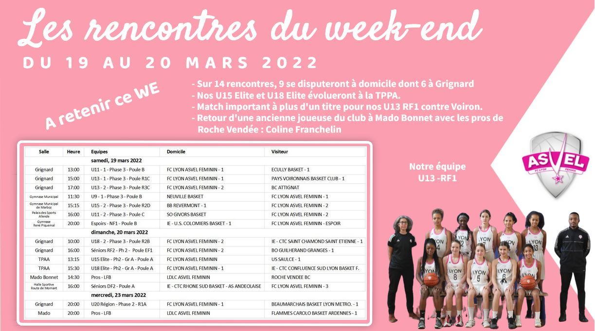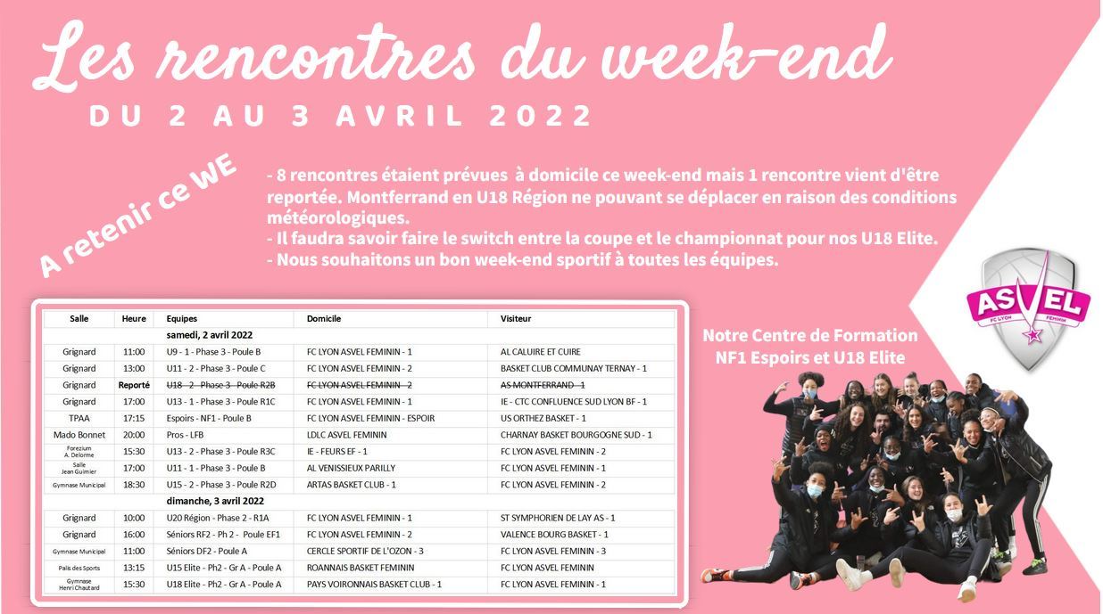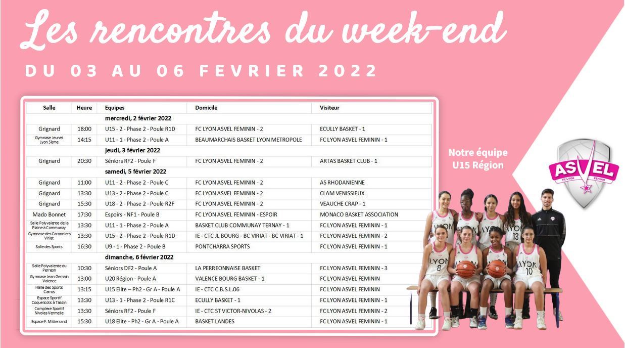 Tous les week-end, vous retrouverez le planning des rencontres de l'ensemble des équipes du club. Les horaires, les salles, les adversaires, tout y sera !